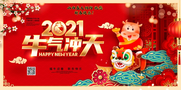 值此新春佳節(jié)到來之際,山西盛大鋼結(jié)構(gòu)工程公司全體員工祝大家身體健康!新春大吉!愿大家歲歲常歡愉,年年皆勝意。2021牛氣沖天!